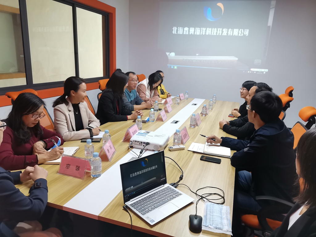 调研组一行先后深入北海鑫冀海洋开发有限公司、源生海洋两家企业进行走访座谈,听取公司负责人介绍企业发展现状、养殖规模、经营情况等,并与企业负责人就如何延长产品产业链,推动养殖业持续向好发展进行了交流。